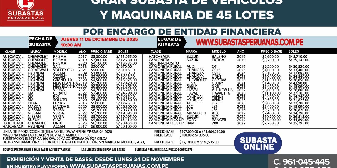 Para adquir las Basas ingresar al sgte link https://www.subastasperuanas.com.pe/